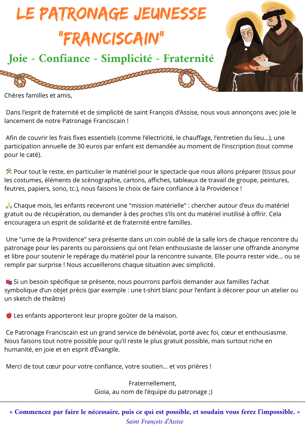 PATRONAGE "SAINT FRANÇOIS D'ASSISE"