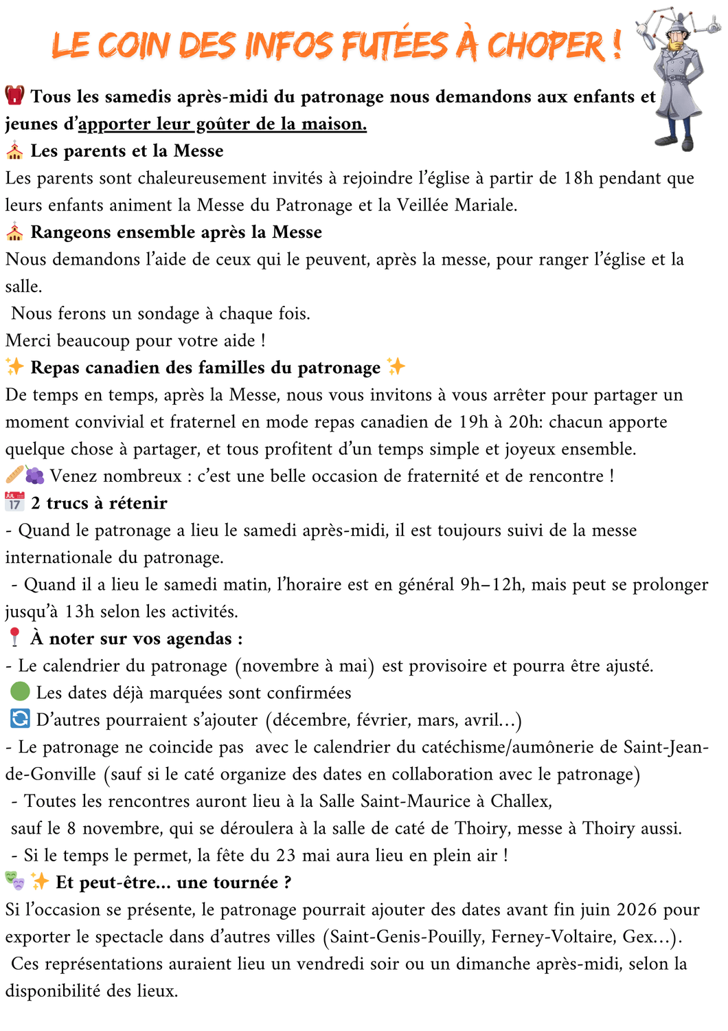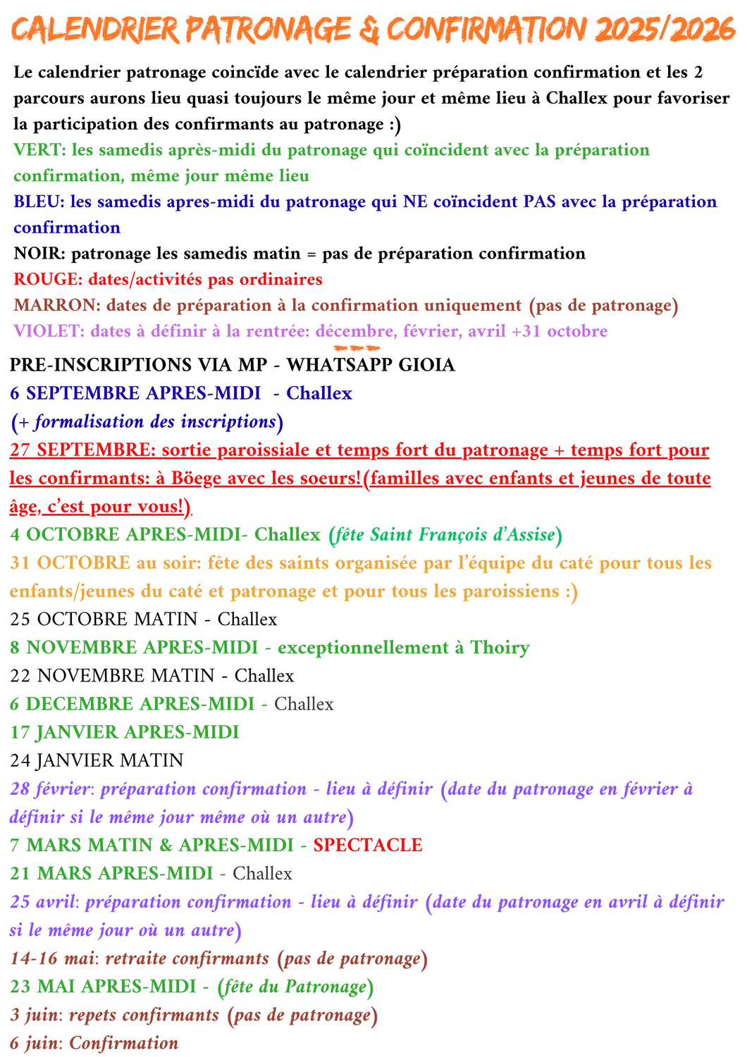 CALENDRIER Patronage 2025/2026