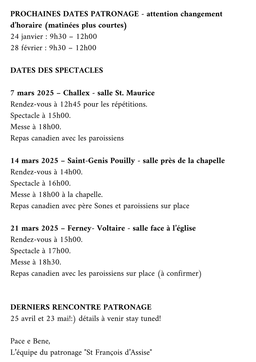 PROCHAINE DATE DU PATRONAGE!